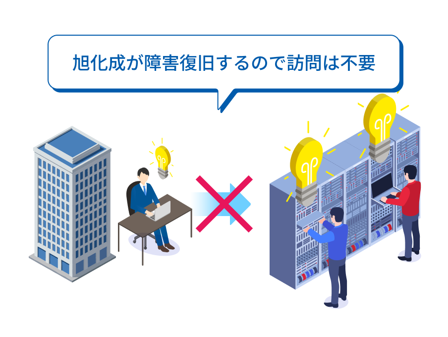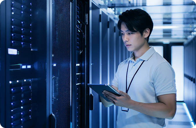 当社の運用・監視サービスは、専門スタッフが障害の初期切り分けから対応をサポートします。 現地への駆けつけを待たずに迅速な初動対応が可能であり、万が一の故障時にもスピーディーな復旧を実現する体制を整えています。